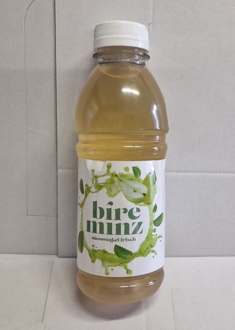 80% Birnensaft CH, pasteurisiert, 20% Minzextrakt CH, pasteurisiert